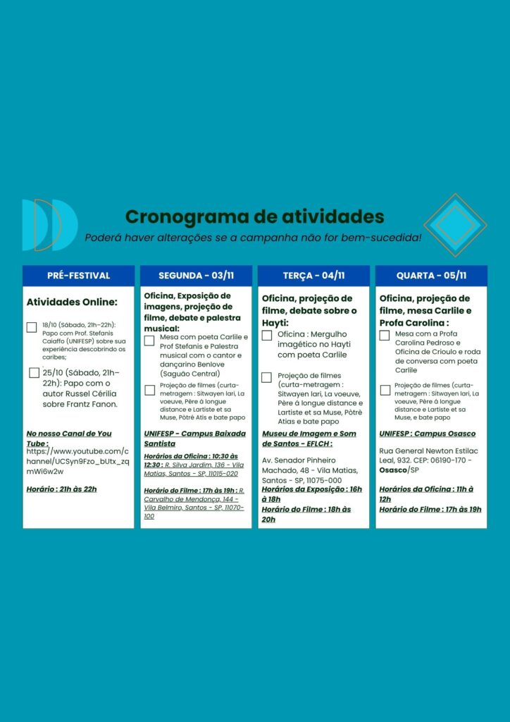 Após uma rica discussão da equipe do Festival Internacional Café-Caribenho, o diretor Odair Aguiar Jr., do Campus Baixada Santista, abre as portas do Campus para receber atividades do Festival. Ele está convencido de que o evento será de grande importância e contribuição para a riqueza cultural brasileira e que o público estudantil saberá aproveitá-lo para fortalecer sua visão cultural do mundo e sua postura profissional em um Brasil pluricultural.